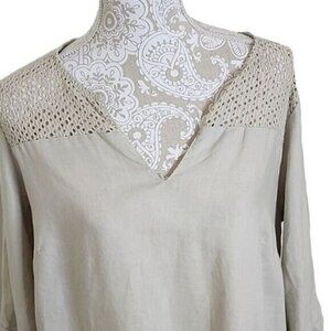Ellen Tracy Top Tunic Cream Linen & Lace 3/4 sleeve Women's 1X