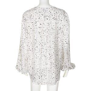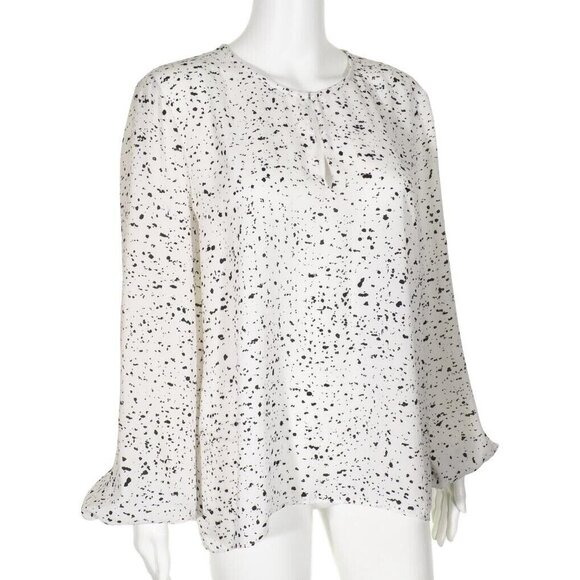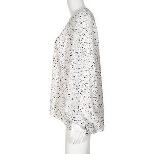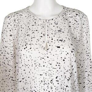 Ellen Tracy Top Womens Large Tunic High Low Keyhole Paint Spattered White Black