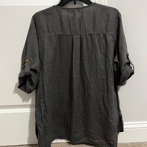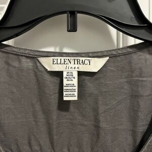 Ellen Tracy Tunic Womens XL 100% Linen Gray With Gold Zipper Roll Tab Sleeve