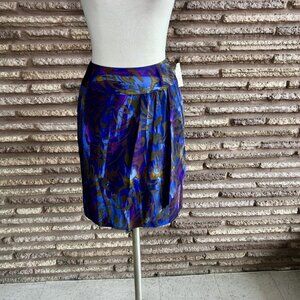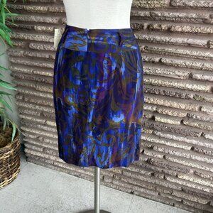 Ellen Tracy Vintage 80s Purple Abstract Print 100% Silk Skirt NWT Size 6 P