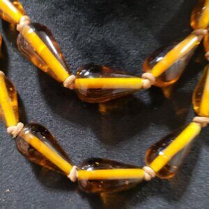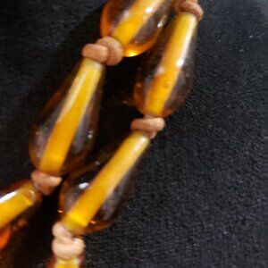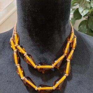 Ellen Tracy Vintage Art Deco Czech Amber Glass Bead Necklace