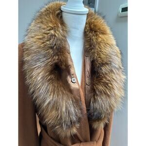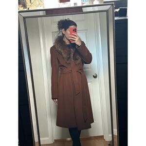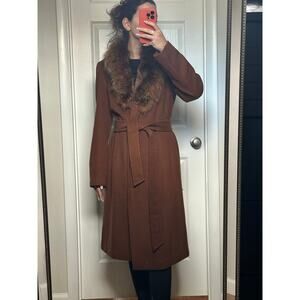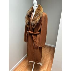 Ellen Tracy Vintage Fur Lined Wool Coat Brown Camel size Medium