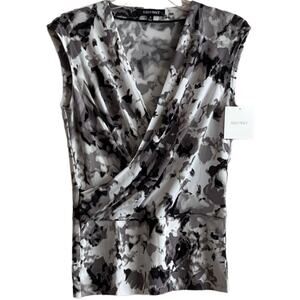 Ellen Tracy Whit Black Sleeveless Faux Wrap Top, S