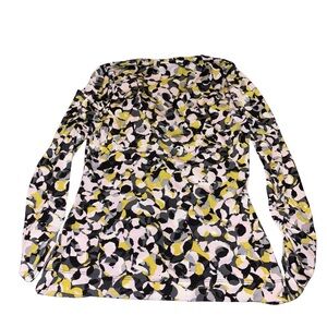 Ellen Tracy White, Black, Grey and Yellow Ruched Blouse NWOT