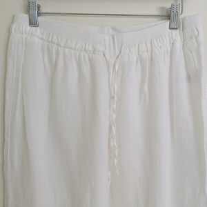 Ellen Tracy White Linen Pull On Drawstring Pants Size M