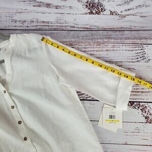 Ellen Tracy White Linen Shirt Size M Buttoned Tunic Top Roll Cuffed Sleeves NWT