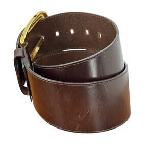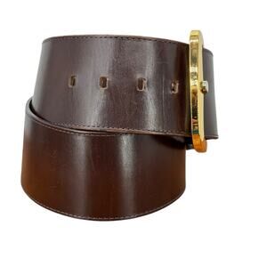 Ellen Tracy Wide Italian Leather Belt Small Women’s Brown Oversized Gold Buckle