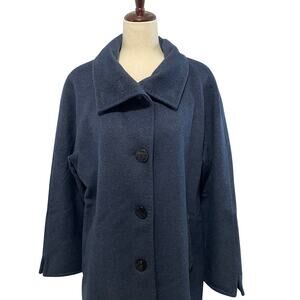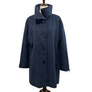 Ellen Tracy Winter Pea Coat Button Front Longline Wool Angora Women's 12 Navy
