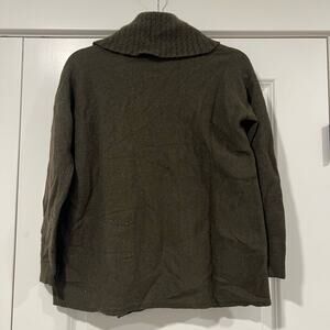 All orders ship within 1-3 business days. This women's green turtleneck is made by Ellen Tracy. It is a wrap style with two beautiful leather details at the shoulder. 100% Extra Fine Merino Wool. Condition is excellent. Size M. Make me an offer!