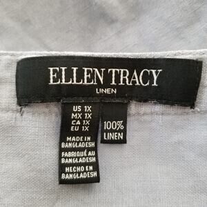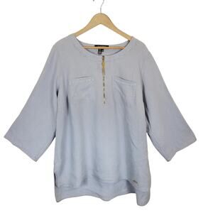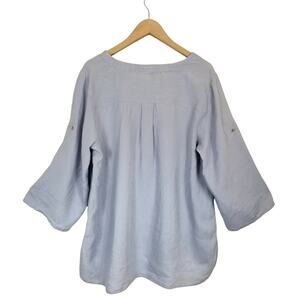 Ellen Tracy Women's 100% Linen 1/4 Zip Blouse Light Blue Size 1X
