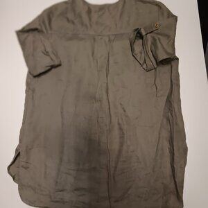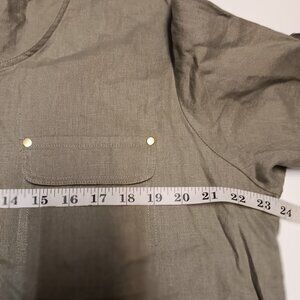 Ellen Tracy Women's 100% Linen Popover Roll-Up Sleeve Shirt Blouse Olive Large