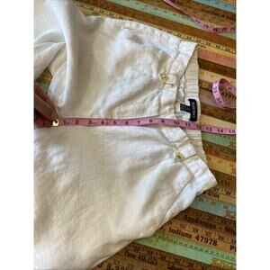 Ellen Tracy Women’s 100% Linen Wide Leg Crop Pant Size S White Pockets Boho