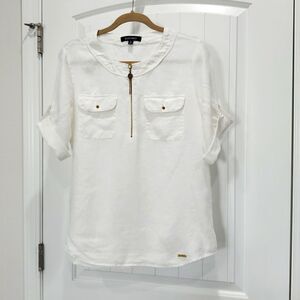 Ellen Tracy Womens 100% White Linen Shirt, Size Small