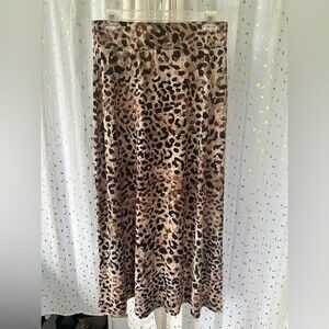 Ellen Tracy Women's Animal Leopard Print Maxi Skirt Side Slit Elastic Waist S
