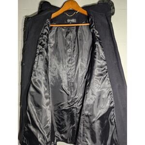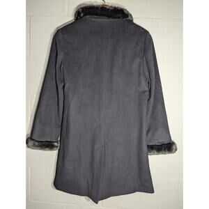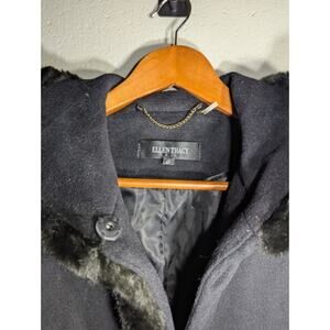 Ellen Tracy Womens Black Wool blend Coat 4P Faux Fur Collar Cuffs sophisticated