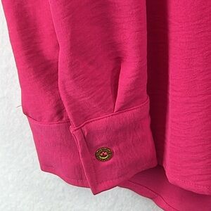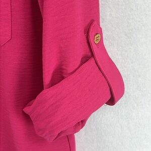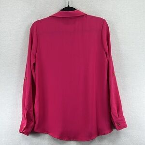 Ellen Tracy Women’s Blouse Top Sz S Pink Textured Polyester L/S Roll-Tabs EUC