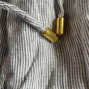 Stylish and comfortable women's shorts in a classic gray stripe. Perfect for casual outings. pure linen, waist tie, pockets, easy slip on for summer. great pre loved condition size medium