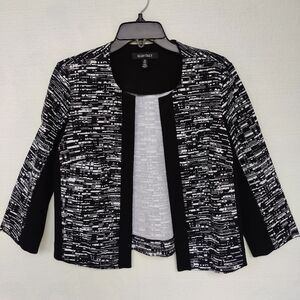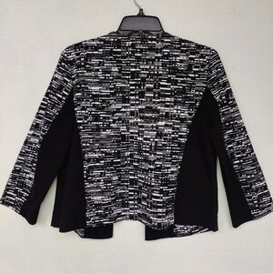 Ellen Tracy Women's Cropped Open Front Jacket Office Carrier Black White Size M