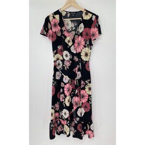 Ellen Tracy Women’s Floral Faux Wrap Tie Slinky Knit Size Small