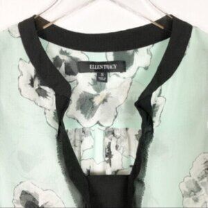 Ellen Tracy | Women's Green & Black Floral Pattern Blouse Size Small