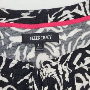Ellen Tracy Womens Large Pullover Buttonhole Black White Roses Gently Used
