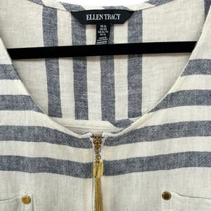 Hello there! I wanted to let you know that I have this lovely Ellen Tracy Women's Linen Striped Gold Accents Rollup Cuffed Sleeve Top in size XL. It's in great condition and has been well taken care of - no flaws whatsoever. This is a classic, timeless addition to your wardrobe. Pair with chambray wide leg pants for a stylish look. The original price was $109, but I'm open to offers!