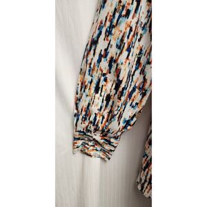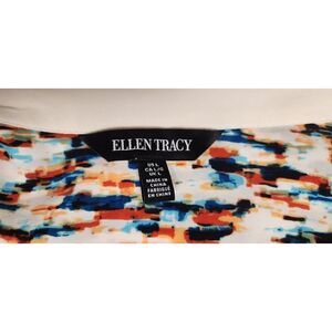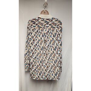 Ellen Tracy Women's Long Sleeve Semi-Sheer Button Down Geo Print Tunic Blouse Size L.