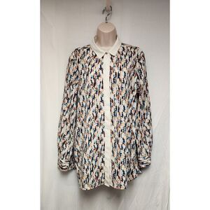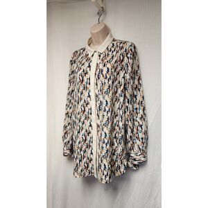 Ellen Tracy Women's Long Sleeve Semi-Sheer Button Down Geo Print Blouse Size L