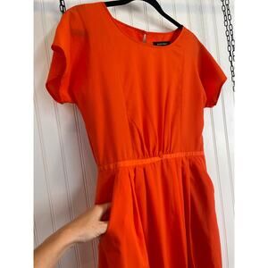 Ellen Tracy Womens Maxi Dress Red Short Sleeve Pocket Belted Short Sleeve Sze 8