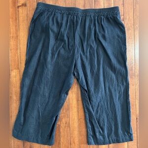 Ellen Tracy Women’s Navy Blue Linen Capris Pants Elastic Waistband Size 1X
