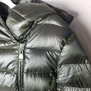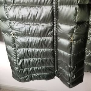 Ellen Tracy Womens Puffer Down Jacket Full Zip Chocolate Brown Sz M Hooded Shiny