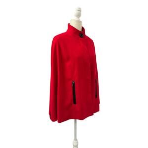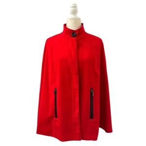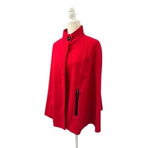Ellen Tracy Womens Red Colet Cape with Faux Leather Trim Size PS