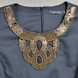 Ellen Tracy Womens Sheath Dress Size 16 Navy Beaded Sequin Statement Collar Mini