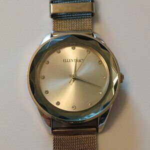 Ellen Tracy Women's Silver Tone Stainless Steel Faceted Bezel Mesh Analog Watch