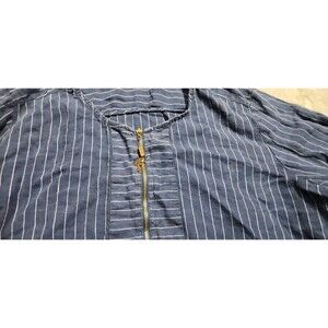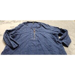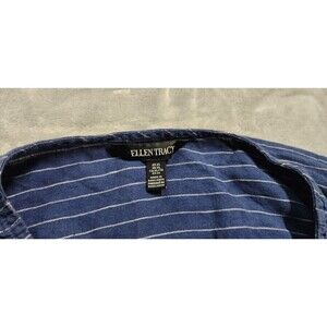 Ellen Tracy Women's Size XL Blue Striped 100% Linen Zip Up Shirt