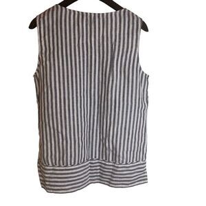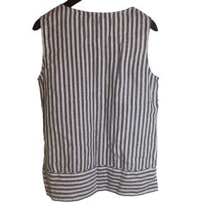 Ellen Tracy Womens Sleeveless Striped Button Linen Nautical Top Size Medium