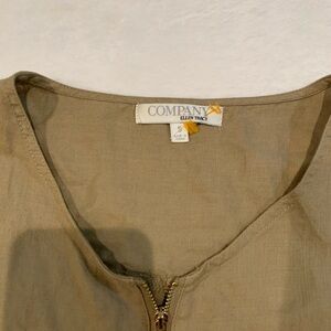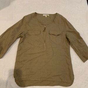 Ellen Tracy Womens Small Brown 1/2 Zip Roll-Tab Linen Sleeve Top 100% Linen.