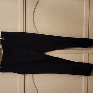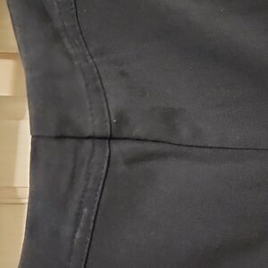Chic black trousers. Ideal for versatile styling. Comfortable and stylish. Be sure to look carefully at the photos, especially the color comparison test that I ran, to see if these are bluish black or black. They look a little wash worn to me, but black. Still in good condition otherwise. Side zip.
