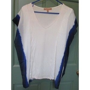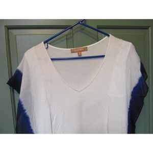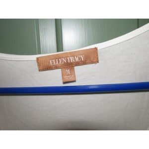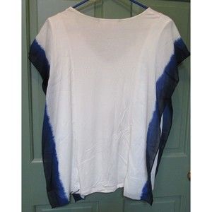 Ellen Tracy Women's White & Blue Short Sleeve Pullover Blouse Size M