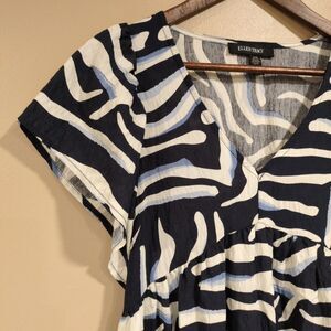 Ellen Tracy Womens XS Midi Maxi Dress Side Pockets Zebra Stripe Navy Blue White