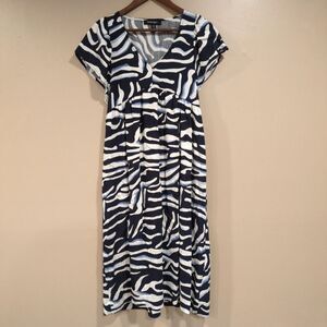 Ellen Tracy Womens XS Midi Maxi Dress Side Pockets Zebra Stripe Navy Blue White