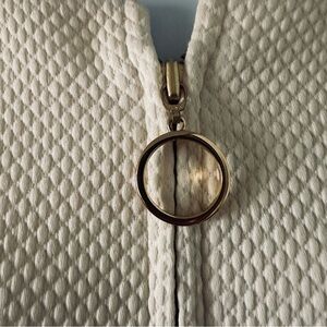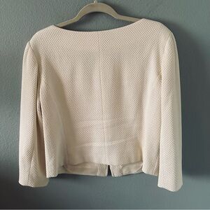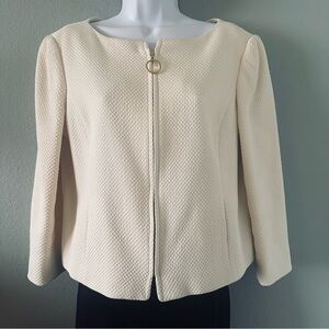 Size 10 LINDA ALLARD for Ellen Tracy cotton waffle texture cropped body blazer/jacket zip front fully lined light shoulder pads, gold tone zipper and pull. Hidden front pockets. Excellent preloved preowned condition, From smoke free home, Please review all pictures.