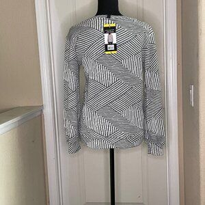 Ellen Tracy Women's size Small Long Sleeve Fine Knit Pullover Top Grey White NEW