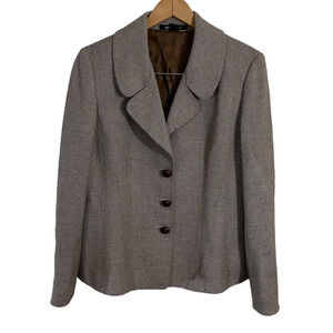 Ellen Tracy Wool Blend Blazer Suit Jacket Size 12 Beige and Brown Spotted Top