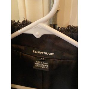 Ellen Tracy Wool Blend Tailored Jacket Brown Size 14 Dressy Fringe Trim Blazer. Condition is Pre-owned EXCELLENT CONDITION