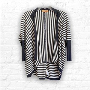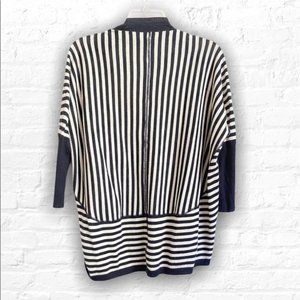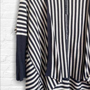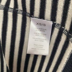 Navy and off white colored open drape cardigan. Wool blend- materials tag pictured. Size is XS/S
