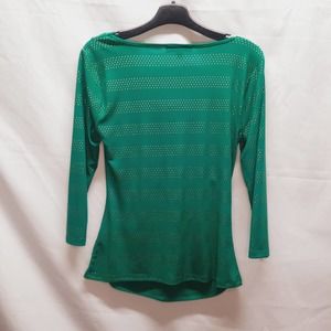 Ellen Tracy Y2K Green and gold dots twist front ruched drape neck 3/4 sleeves top. 95% Polyester 5% Spandex. Preowned EUC, See all pictures as part of description. Bouse has been laundered and ready to wear.