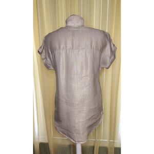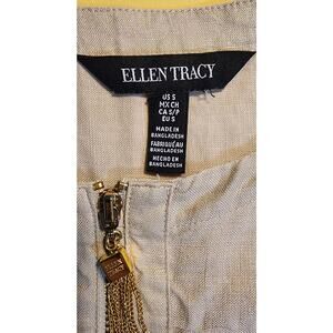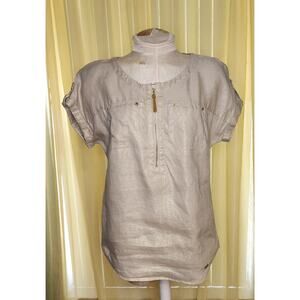 Ellen Tracy Zip Roll Tab LINEN tunic Size S Gold Beige/Gold