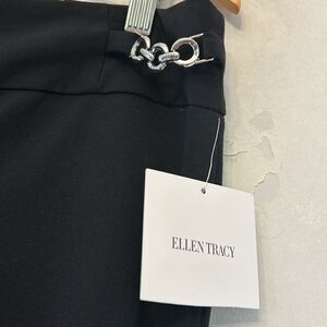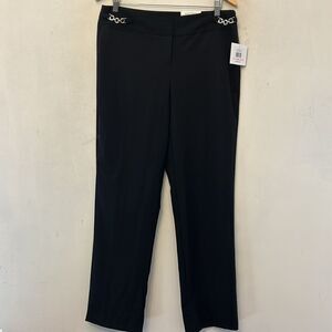 Ellen Tracy black mid rise straight leg pants Black chain accent Size 10 New