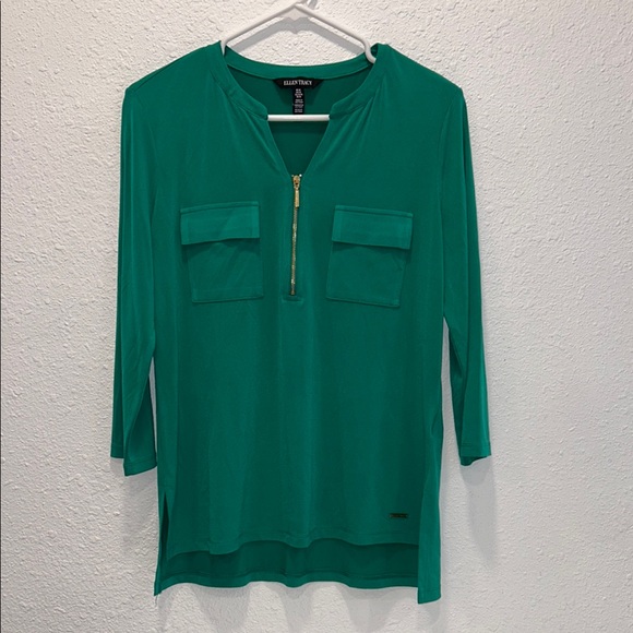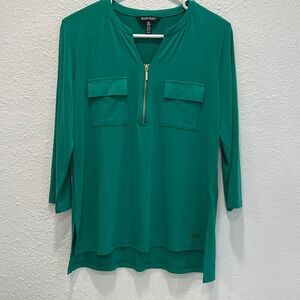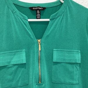 Ellen Tracy green gold zipper 3/4th sleeve blouse top for women